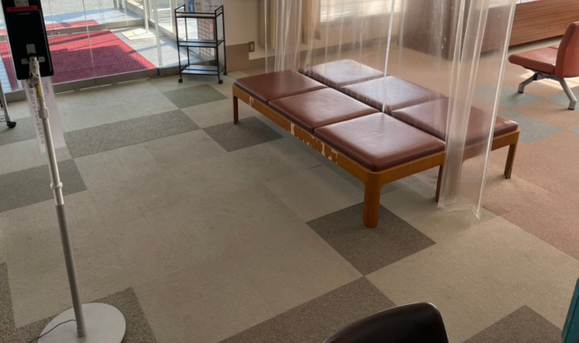 今回の工事は、病院の待合室の床改修工事です。