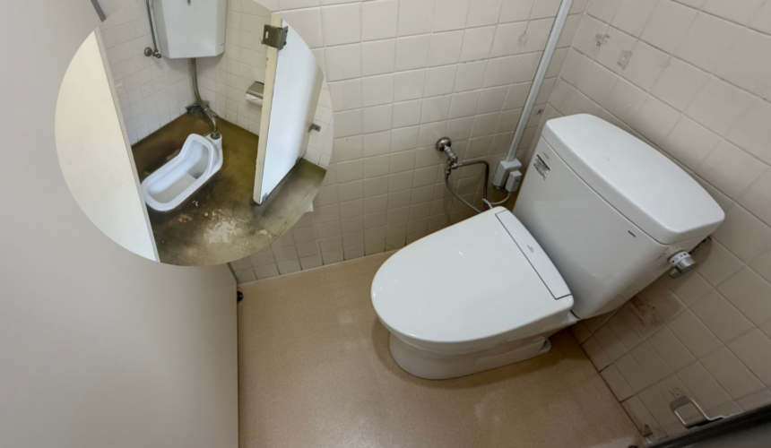 トイレは和式から洋式へ変更し、あわせて小便器を撤去。